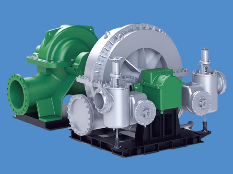 T160型汽轮机是单级背压式汽轮机,有一个复速级叶轮,叶轮节圆直径为1600毫米,主轴转速为1500r/min,功率900-3000KW。该机型专为拖动低转速、大流量、大功率的循环水泵设计,与水泵直联,整体布局紧凑。 适用蒸汽源:大流量低温低压过热蒸汽。
